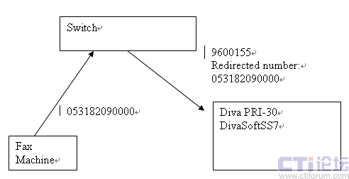 Dialogic Diva SS7傳真解決方案簡介:以往的傳真運(yùn)營在處理接收傳真的時(shí)候都是通過提供一個(gè)接入平臺號(例如山東網(wǎng)通的商務(wù)新動(dòng)力為9600155),然后通過語音提示輸入傳真信箱號。這樣做的缺點(diǎn)在于對于所有的客戶來說接入號碼都是統(tǒng)一的,不能滿足個(gè)性化需求。有一些客戶不想失去原有的傳真機(jī)號碼。希望網(wǎng)絡(luò)傳真系統(tǒng)能夠綁定他們原來的傳真?zhèn)髡鏅C(jī)號碼。例如某客戶原有的號碼是053182090000,通過號碼綁定,當(dāng)其他用戶向他發(fā)傳真的時(shí)候,撥打的號碼是053182090000,但是此呼叫會(huì)被呼轉(zhuǎn)到9600155。傳真平臺根據(jù)原始被叫號來接收傳真。原有的基于PRI的解決方案不能解決原始被叫號的傳送問題,所以必須借助SS7網(wǎng)絡(luò)才能實(shí)現(xiàn)?蛻魮艽053182090000,呼叫被呼轉(zhuǎn)到9600155.在Redirected