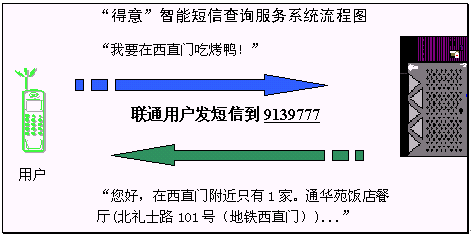 2004年4月15日和4月20日,擁有完全自主知識產(chǎn)權(quán)的語音與語言技術(shù)開發(fā)商和技術(shù)提供商北京得意音通技術(shù)有限責(zé)任公司(得意公司),在國際上率先把中文自然語言理解技術(shù)應(yīng)用在中國聯(lián)通和中國移動短信服務(wù)平臺上,結(jié)合《精品購物指南》報社權(quán)威、全面的信息資源,開通了北京地區(qū)餐飲領(lǐng)域智能短信查詢服務(wù)(簡稱智能短信),并將進(jìn)一步支持互聯(lián)網(wǎng)平臺和WAP平臺,陸續(xù)開通更豐富和更實(shí)用的智能信息服務(wù)。