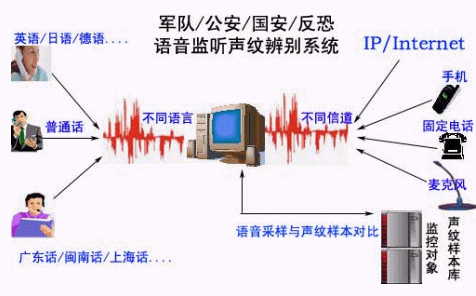 目前,犯罪分子、恐怖分子和間諜等的作案手段逐漸趨向高智能、高科技,為了逃避打擊,他們往往通過多種渠道進行通信,如手機、固定電話、公用電話等與同伙或者親友聯(lián)系,有些特殊的被監(jiān)控電話是公用電話甚至是中繼線,由于通話量大,而且大量的通話都與案件無關,涉及到被控對象的通話只是其中一小部分。這樣,公安和安全部門的執(zhí)法人員只能整天守候在偵控終端旁,花費大量的時間和精力處理大量無用的語音信息,等候嫌疑人的出現(xiàn);這樣,公安人員只能整天守候在偵控終端旁,花費大量的時間和精力處理大量無用的語音信息,等候嫌疑人的出現(xiàn);而一些在逃的嫌疑人,經(jīng)常幾個月才往特定的目標處打一個電話,而且通話內容又難以判斷,導致執(zhí)法人員很難分辨出嫌疑人的聲音。如何從大量的語音信息中提取嫌疑人的聲音,并更好地消除判別語音的過程中可能出現(xiàn)的人為誤差,從而提高對偵察對象身份識別的效率和準確率,為偵查辦案提供可靠的情報,提高辦案效率,是有關部門迫切需要解決的問題。