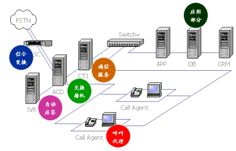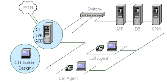 。。CTI Builder本身是一個軟交換機(jī),具有普通程控交換機(jī)的功能,如:分機(jī)切轉(zhuǎn)、外線呼入、內(nèi)線呼出、轉(zhuǎn)接電話、代接電話等等,同時還具有一些高級功能如:語音信箱、排隊機(jī)、內(nèi)線組呼叫、高級選線等功能。也就是說,系統(tǒng)已經(jīng)提供了呼叫中心通用的功能,用戶只需要定義自己的業(yè)務(wù)而不必關(guān)心呼叫中心的內(nèi)部交換。