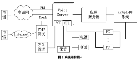 通過業(yè)務(wù)處理系統(tǒng),一方面為ACD系統(tǒng)提供基于產(chǎn)品信息、客戶信息的路由分配方式,為客戶提供更為迅速,更為個(gè)性化的服務(wù);另一方面為IVR、座席等系統(tǒng)提供數(shù)據(jù)庫訪問服務(wù)、文件服務(wù)。同時(shí)應(yīng)用服務(wù)器還提供認(rèn)證加密、系統(tǒng)管理配置、網(wǎng)關(guān)等功能。