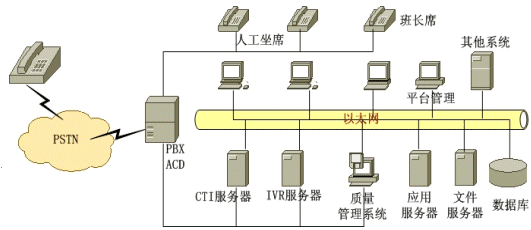 負(fù)責(zé)座席話機(jī)與計(jì)算機(jī)的同步,話務(wù)員在接到電話的同時(shí),屏幕上已經(jīng)同步地顯示出該客戶(hù)的相關(guān)信息,使話務(wù)員可以針對(duì)客戶(hù)記錄為客戶(hù)提供更為體現(xiàn)的個(gè)性化服務(wù)。PBX/ACD、IVR和座席之間關(guān)于呼叫控制和信息傳輸都是通過(guò)CTI服務(wù)器完成的,是呼叫中心通信中樞神經(jīng)系統(tǒng)。