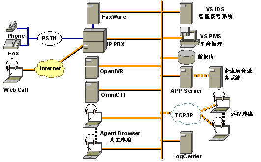 3.CommSuites通過(guò)內(nèi)部IP協(xié)議可以方便設(shè)立遠(yuǎn)程座席和遠(yuǎn)程接入設(shè)備,大大節(jié)省系統(tǒng)運(yùn)營(yíng)費(fèi)用;通過(guò)H.323協(xié)議可以方便同第三方支持H.323的設(shè)備進(jìn)行通信