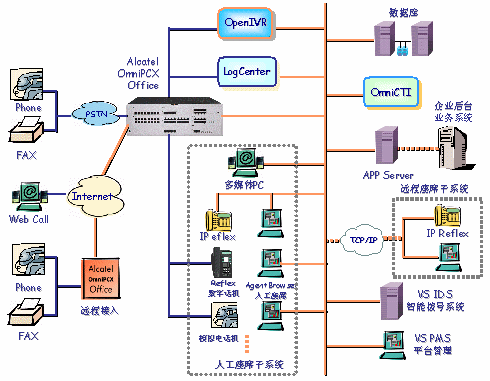 OmniCTI:負(fù)責(zé)計(jì)算機(jī)和通信子系統(tǒng)之間的通信功能,提供ACD排隊(duì)和技能座席功能。
