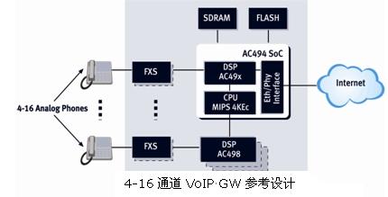 最后但并非最小的應(yīng)用是網(wǎng)關(guān)。更高密度的網(wǎng)關(guān)(最高達16個信道)也要求一個集成和完整的VoIP應(yīng)用。在這種情況下,工程師更愿意選擇芯片組以針對不同產(chǎn)品提供可伸縮的解決方案,并為所有解決方案利用相同的軟件成果。