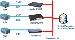 通過利用語(yǔ)音識(shí)別和一些新一代技術(shù),使用臺(tái)式機(jī)、移動(dòng)設(shè)備或普通電話就可以對(duì)系統(tǒng)進(jìn)行統(tǒng)一訪問。 對(duì)于此類系統(tǒng),可以在 PBX 和 UM 服務(wù)器之間插入 AudioCodes 網(wǎng)關(guān),從 TDM 變換到統(tǒng)一消息傳遞系統(tǒng)選擇使用的 VoIP 協(xié)議:SIP。