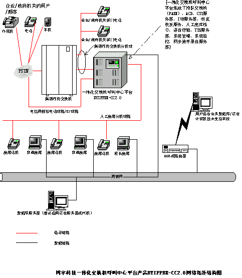 深圳博宇科技一體化交換機呼叫中心平臺產(chǎn)品BYIPPBX-CC2.0的呼叫中心系統(tǒng)網(wǎng)絡拓撲結構如下: