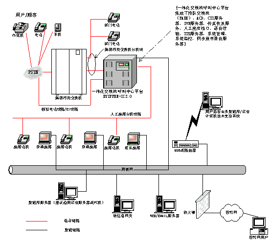 基于博宇科技一體化交換機呼叫中心平臺產(chǎn)品BYIPPBX-CC2.0的長安鈴木公司客戶服務中心系統(tǒng)網(wǎng)絡(luò)結(jié)構(gòu)