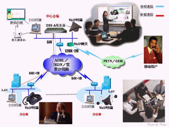 | 高品質 | 擁有先進的音頻、視頻編解碼核心技術。 采用MPEG4視頻壓縮傳輸,高品質圖像;主席端采用MP3編碼,客戶端采用G.711/GSM,音質高,支持音樂;聲音、視頻同步 支持全屏幕顯示,可外接電視、電視墻、投影等設備 |