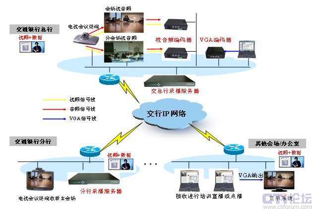 交通銀行做為重要的大型國有商業(yè)銀行之一,在國家金融事業(yè)發(fā)展、以及保障和促進國家經(jīng)濟發(fā)展方面占有重要的地位。交通銀行極其重視信息化建設(shè),為提高工作效率、改善服務(wù)方式、提高競爭力,及抗擊目前席卷全球的金融海嘯,交通銀行建設(shè)了覆蓋各級機構(gòu)的電視電話會議系統(tǒng),在該系統(tǒng)中采用了銳取多媒體錄播系統(tǒng)。