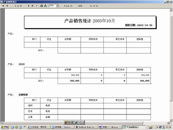 可對客戶(雇員)合同,根據(jù)合同階段、月份、合同金額、合同應(yīng)收應(yīng)付款、采購成本、客戶、銷售人員等條件進行查詢和統(tǒng)計, 查詢統(tǒng)計結(jié)果以詳細列表及圖示進行顯示。