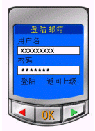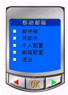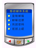 進入移動郵件系統(tǒng)后,可分別選擇"登陸郵箱、郵箱注冊、找回密碼、返回上級"來進行下一步操作。