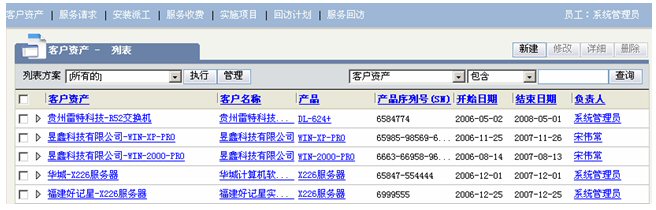 客戶資產(chǎn)/服務(wù)請求/服務(wù)派工/服務(wù)收費(fèi)/回訪計(jì)劃/服務(wù)回訪