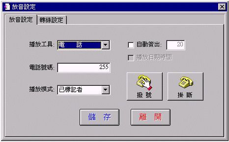 "Play":放音。(未再點取其它功能,自動播放系一筆)