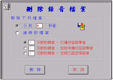 僅限擁有最高操作權(quán)限碼之維護人員才能使用。當(dāng)系統(tǒng)維護需要此功能,隨時可以人工手動的方式刪除硬盤內(nèi)的語音檔案。