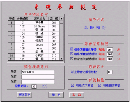 ·支持各種知名語音資料永久備份裝置。當(dāng)有雙備份裝置時,亦可將其設(shè)置成串連或并聯(lián)功能。常運用之項目,例如: