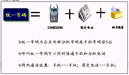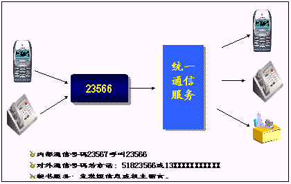鐵路內(nèi)部員工可以統(tǒng)一所有的通信工具,只使用一個(gè)號(hào)碼,一次呼叫便可以完成通信,使通信更加簡(jiǎn)單、可靠。可以實(shí)現(xiàn)換機(jī)換網(wǎng)不換號(hào),用戶獲得一個(gè)終身的聯(lián)系號(hào)碼,用戶無(wú)論更換任何通信工具,聯(lián)系號(hào)碼和方式不會(huì)改變。例如:在路局領(lǐng)導(dǎo)找下屬的時(shí)候,只需要撥打他的統(tǒng)一號(hào)碼,便可以直接找到他。不必考慮他是否在外出還是在辦公室,是否更換了手機(jī)號(hào)碼。統(tǒng)一號(hào)碼就像他員工號(hào)碼,始終不變,即撥即通!