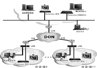 根據(jù)揚(yáng)州市政府通信網(wǎng)絡(luò)結(jié)構(gòu)及傳輸容量的實(shí)際情況,各區(qū)及市直屬職能部門分會場連接揚(yáng)州市政府主會場的網(wǎng)絡(luò)帶寬為512kbps或以上,會議電視系統(tǒng)使用其中的384kbps以上帶寬組建多點(diǎn)會議電視系統(tǒng),T.120數(shù)據(jù)會議使用128kbps帶寬。