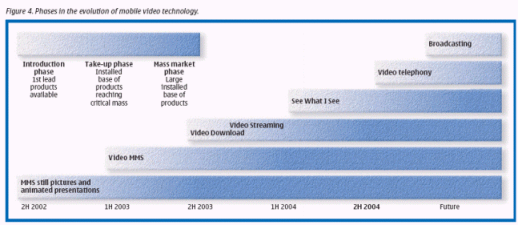 諾基亞通過委托市場(chǎng)調(diào)查中發(fā)現(xiàn),視頻服務(wù)是被看作下一個(gè)令人興奮的P2P信息服務(wù),例如"內(nèi)容到用戶"服務(wù)。根據(jù)調(diào)查報(bào)告顯示,有62%的人表示對(duì)視頻信息非常感興趣,并且覺得這是一個(gè)真正意義的進(jìn)步。(信息來源:2003年諾基亞委托進(jìn)行的MMS研究質(zhì)量調(diào)查報(bào)告)