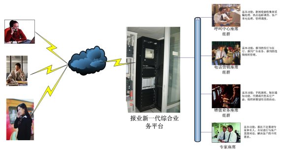 報(bào)業(yè)新一代綜合業(yè)務(wù)平臺(tái)包括:報(bào)業(yè)的呼叫中心、電話營銷平臺(tái)、增值業(yè)務(wù)平臺(tái)。