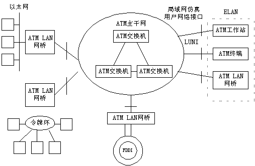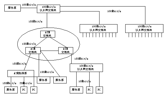 以ATM為骨干網(wǎng)的企業(yè)局域網(wǎng) 現(xiàn)在幾乎所有的ATM廠商和大多數(shù)著名網(wǎng)絡廠商都提供使用光纖的155Mbit/s ATM主干網(wǎng)交換機,有的還提供25Mbit/s的ATM桌面產(chǎn)品。從擴展性來講,FDDI的最高傳輸速率為100Mbit/s,并由多臺設備共享。ATM的傳輸速率正在向幾吉比特率至幾十吉比特率發(fā)展,ATM作為企業(yè)主干網(wǎng)能否得到普及應用,主要取決于價格和標準的完善程度。