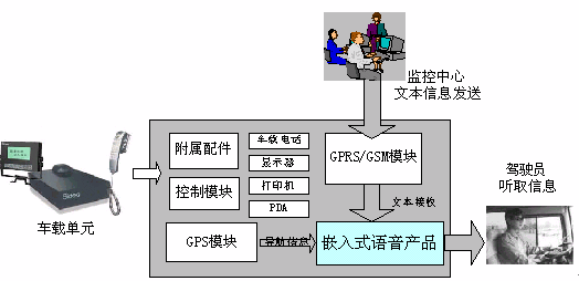 首先,當(dāng)車載GPS單元接收到由監(jiān)控中心發(fā)來的調(diào)度、提醒、叫車等信息時(shí),語音合成會伴隨顯示器上的顯示,同步將文字讀出,轉(zhuǎn)變?yōu)榍逦鲿车脑捯簦@樣一方面司機(jī)不用特意在駕駛中注意顯示屏的文字內(nèi)容而同樣可以及時(shí)獲取信息的內(nèi)容,另一方面也減少了因?yàn)榉稚耨{駛而引發(fā)的交通安全隱患。