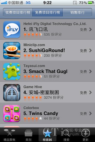 CTI論壇(ctiforum)5月24日消息(記者 張潔):科大訊飛推出的移動互聯(lián)網(wǎng)時代語音創(chuàng)新應(yīng)用——訊飛口訊,自5月18日登陸App Store為用戶提供免費下載應(yīng)用以來,迅即得到了國內(nèi)外蘋果手機用戶的高度關(guān)注和熱烈支持,短短兩天時間之內(nèi)即在App Store免費項目排行榜登頂,并已持續(xù)多日占據(jù)榜首位置。排行榜位置是由用戶下載量、實際應(yīng)用頻率和用戶評價等各項指標(biāo)綜合評定形成的,充分顯示了廣大“果粉”對于“訊飛口訊”這一創(chuàng)新性應(yīng)用的喜愛與高度認(rèn)可。