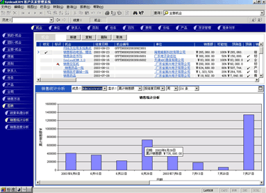 圖3下半部分的圖表是對上半部分的記錄進(jìn)行表現(xiàn);上半部分的記錄,是根據(jù)一定的條件篩選出來的。在圖表中,可以選擇一些常用的參數(shù),如是全部公司的、還是某個分支機(jī)構(gòu)的、還是某個銷售代表的……