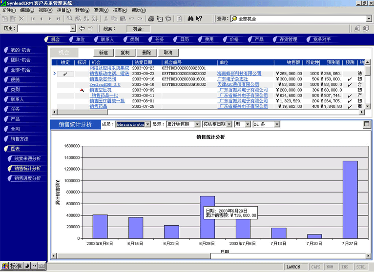 (1) 基于機(jī)會的"銷售分析統(tǒng)計圖表"
