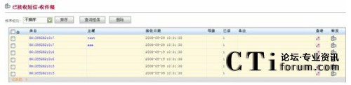 通過Web方式的客戶端收取用戶發(fā)來的短信,可以按日期時(shí)間、主題、內(nèi)容、主叫號(hào)碼等進(jìn)行查詢和排序;將收到的短信轉(zhuǎn)發(fā)給其它個(gè)人手機(jī)或用戶群;