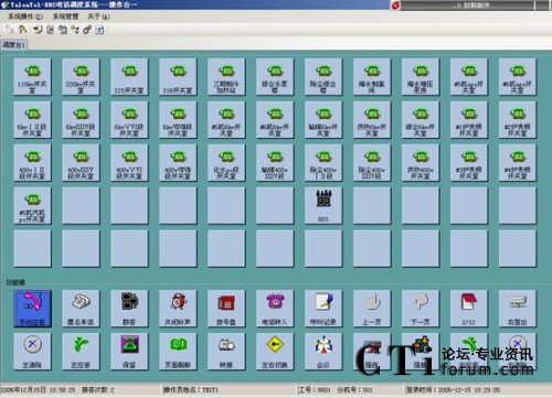 調(diào)度員通過觸摸屏(或者鍵盤鼠標(biāo))控制操作調(diào)度系統(tǒng),操作臺可以使用12個(gè)功能頁頁面。每個(gè)頁面共有22個(gè)功能按鍵和55個(gè)調(diào)度業(yè)務(wù)按鍵,55個(gè)調(diào)度業(yè)務(wù)按鍵可以根據(jù)具體調(diào)度業(yè)務(wù)需要靈活地編輯設(shè)置成直通呼叫鍵或組呼鍵。