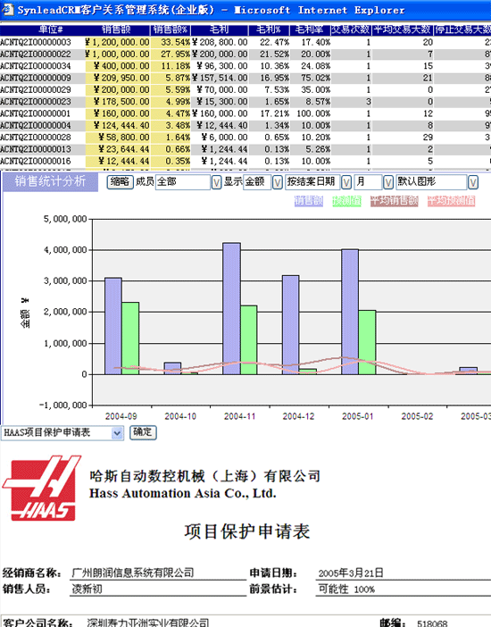 ,"可擴(kuò)展樣式語言轉(zhuǎn)換")來制作。這種語言也是通用的,并且容易掌握。為了獲得更強(qiáng)大的功能,XSLT允許插入Javascript等一些其他語言或者插件。在這些語言的操縱下,結(jié)果樹的輸出形式是非常靈活的。下圖是國內(nèi)知名的CRM軟件--SynleadCRM企業(yè)版將其XML數(shù)據(jù)源轉(zhuǎn)換成的一些報(bào)表和圖表: