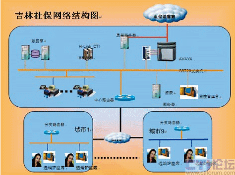 吉林社保12333電話咨詢平臺采用AVAYA8720交換機(jī),商路通Hi-Link呼叫中心中間件,4E1中繼接入,70個IP座席,120路IVR,70路座席錄音。該方案的核心是在全省范圍內(nèi)建立一套統(tǒng)一接入,集中控制的呼叫中心平臺,省內(nèi)的全部電話呼叫統(tǒng)一接入省級機(jī)構(gòu)的平臺,借助IP網(wǎng)絡(luò)對省、市州的各級坐席進(jìn)行統(tǒng)一的呼叫分配、錄音等管理。