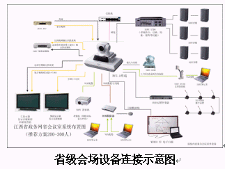 整個(gè)視頻會(huì)議系統(tǒng)擬在11個(gè)設(shè)區(qū)市會(huì)議電視管理中心和137個(gè)分會(huì)場(chǎng)(全省137個(gè)縣、區(qū)),共 120 個(gè)點(diǎn)。所有會(huì)場(chǎng)均采用SONY PCS-1設(shè)備,其中包括:南昌市12點(diǎn)、九江市14點(diǎn)、吉安市13點(diǎn)、景德鎮(zhèn)市4點(diǎn)、新余市4點(diǎn)、贛州市19點(diǎn)、宜春市10點(diǎn)、撫州市11點(diǎn)、萍鄉(xiāng)市6點(diǎn)、上饒市12點(diǎn)、鷹潭市4點(diǎn)等共11個(gè)地級(jí)市 137個(gè)縣(區(qū)), 其中在會(huì)議電視管理中心,和各級(jí)市的中心點(diǎn)放置PCS-DSB數(shù)據(jù)盒,用于培訓(xùn)中傳送雙流。