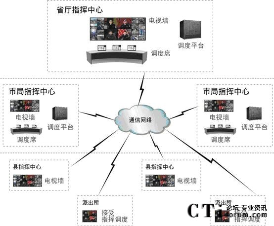 系統(tǒng)支持大型或中小型調(diào)度指揮中心部署,也支持在領導辦公室部署小型指揮點;各個前端點可通過E1專線或以太網(wǎng)接入中心平臺,也可通過衛(wèi)星、無線等方式支持移動終端的接入。
