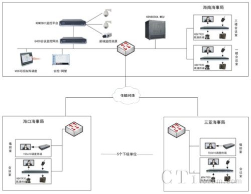 在應急指揮系統(tǒng)的建設方面,科達在海南海事局的搜救中心部署KDV-VCS可視指揮調度系統(tǒng)一套及VS-G400網關一臺,5個下級單位的值班室部署調度終端各一臺,從而實現對會議圖像資源和監(jiān)控圖像資源的綜合調度管理。