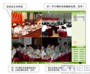 另外,通過該系統(tǒng)還可隨時(shí)調(diào)用各值班點(diǎn)的視頻圖象,在發(fā)生突發(fā)事件時(shí)各指揮人員能夠通過共同查看相關(guān)視頻資料來共商處理方案,從而有效的做好應(yīng)急處理工作。