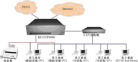 - RT-CCP1000支持大容量的模擬分機(jī)并集成完善的數(shù)據(jù)通信系統(tǒng)功能和業(yè)務(wù),對(duì)于員工較多但計(jì)算機(jī)應(yīng)用層次較低的企業(yè)(如工廠),大部分員工只需簡(jiǎn)單的模擬電話進(jìn)行語音通信,少量員工需要高層次的通信和計(jì)算機(jī)應(yīng)用,用RT-CCP1000構(gòu)建的系統(tǒng)可以很好地適用。