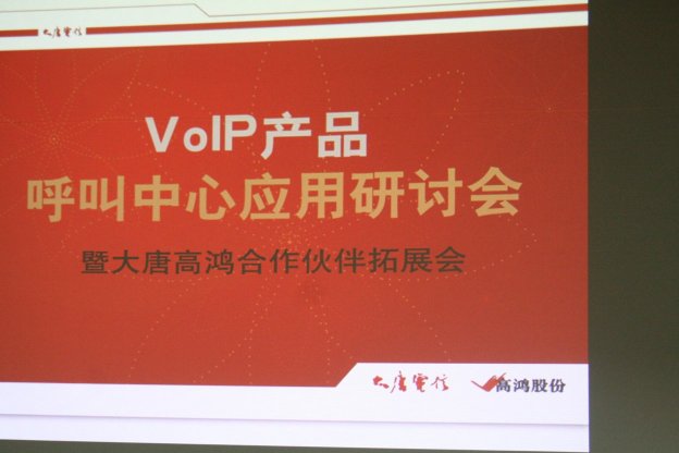 2006年9月8日,由中國VoIP業(yè)界的引領(lǐng)者大唐高鴻數(shù)據(jù)網(wǎng)絡(luò)技術(shù)股份有限公司(股票簡稱:高鴻股份;股票代碼:000851)主辦的大唐高鴻VoIP產(chǎn)品呼叫中心應(yīng)用研討會在北京大唐電信集團主樓隆重舉行,此次會議由CTI論壇協(xié)辦。這是會議是大唐高鴻攜其VoIP產(chǎn)品進軍呼叫中心領(lǐng)域的里程碑。參加會議的代表來自虛擬運營商、VoIP公司、呼叫中心公司,企業(yè)行業(yè)客戶以及知名媒體共120余人,大唐高鴻還向會議代表介紹了其VoIP產(chǎn)品與呼叫中心廠商的合作計劃,預(yù)示著大唐高鴻正式向全國展開VoIP產(chǎn)品在呼叫中心行業(yè)中的應(yīng)用的市場攻勢。