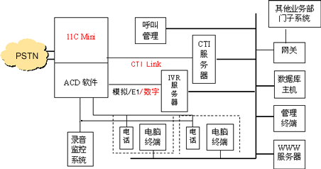 通過CTI Link M1D軟件,實現(xiàn)CTI服務(wù)器與11C Mini交換機之間進(jìn)行呼叫狀態(tài)傳遞和呼叫控制,支持北電ACD、CDN等先進(jìn)排隊技術(shù)。同時還為客戶端提供CTC