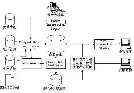 易虹eCRM解決方案,采用Sagent Real Time e-Business Solution作為數(shù)據(jù)倉庫建設平臺。Sagent Solution提供了數(shù)據(jù)倉庫建設、數(shù)據(jù)分析和數(shù)據(jù)倉庫管理的全套的工具。利用這些工具,用戶可以快速地實現(xiàn)數(shù)據(jù)倉庫和客戶分析系統(tǒng)。