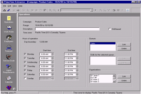 絕大多數(shù)的WFMS可以通過歷史數(shù)據(jù)和人員情況自動生成排班表。而且它也只是簡單的根據(jù)呼叫中心的運營時間來排班。舉個例子,某個呼叫中心在排班是有兩個班,一個工作時間是早7點到下午3點,另一個是早九點到晚五點,這就意味著不僅要安排早、晚休息,還要顧及到午休的時間。休息的安排要保證能夠在電話的持續(xù)中也能有持續(xù)的人員保證電話量。在這個自動化軟件的之中還有一個因素要能夠?qū)崿F(xiàn)自動化--人的因素。例如:Mary和Jane想同時去吃午餐,然而自動化的排班表并不是這樣的。然而主管根據(jù)當時的話務(wù)量情況和工作狀況以及工作規(guī)范批準了Mary和Jane共享午餐的要求,而WFMS就要能夠處理這樣很有可能發(fā)生,而且是合理的情況。排班表的更改應(yīng)該就是簡單的拖拽圖標就應(yīng)該能夠?qū)崿F(xiàn)的功能,并且能夠在這種更改會對預(yù)測的話務(wù)量差生不好影響時,拒絕這種拖拽行為。