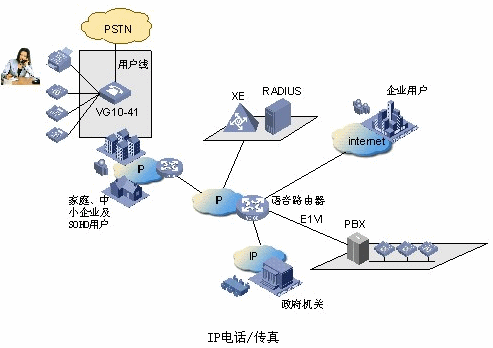 - 用戶通過VG 語音網關不僅可以接入到寬帶城域網上,而且還可以經過Internet和國際用戶進行IP電話/傳真通訊。
