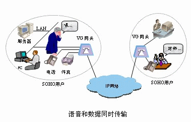 - VG 語音網關除了為SOHO用戶提供IP電話和IP傳真服務外,同時還可以通過以太網接口連接本地局域網,實現(xiàn)語音和數(shù)據(jù)同時傳輸,提高了資源利用率。