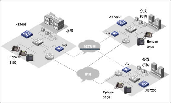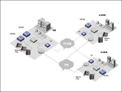 華為三康的XE7000IP語音解決方案是為企業(yè)提供融合的通信解決方案,在同一網(wǎng)絡(luò)上融合語音、數(shù)據(jù)和視頻信息,以滿足其日益增長的企業(yè)通信的要求從而解決了現(xiàn)代企業(yè)面對(duì)的傳統(tǒng)PBX語音服務(wù)和IP網(wǎng)絡(luò)數(shù)據(jù)服務(wù)分離問題。華為三康的XE7000IP語音解決方案構(gòu)建在企業(yè)現(xiàn)有IP數(shù)據(jù)網(wǎng)絡(luò)之上,以集中式管理方式提供企業(yè)全網(wǎng)范圍內(nèi)的呼叫控制以及管理,業(yè)務(wù)控制和信令分離使得用戶在管理上更加簡(jiǎn)單透明,極大的節(jié)省了日常維護(hù)費(fèi)用和降低了維護(hù)難度。并使得客戶可以在任意地方實(shí)現(xiàn)IP語音數(shù)據(jù)接入,使得企業(yè)分布式辦公的不再因?yàn)槲锢砜臻g隔離而無法實(shí)現(xiàn)。