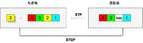 利用實時傳輸控制協(xié)議RTCP反饋信息提供丟包重發(fā)功能,當接收端檢測到有丟包時,判定對端是否來得及進行重發(fā),可以的話通過RTCP控制信道向發(fā)送端請求重發(fā)。