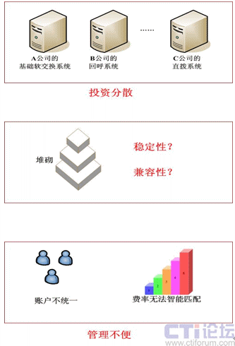 很多運(yùn)營者常常都是最初搭建一套基礎(chǔ)的VOIP運(yùn)營平臺(tái),之后出現(xiàn)回呼業(yè)務(wù),購買一套回呼系統(tǒng)與原系統(tǒng)對(duì)掛接,然后發(fā)現(xiàn)直撥業(yè)務(wù)在國際話務(wù)中優(yōu)勢(shì)明顯,于是又搭建一套直撥系統(tǒng)。