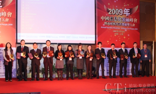 CTI論壇(ctiforum)12月15日消息(記者 張塵):12月10日,“2009中國信息化領(lǐng)袖峰會暨商用軟件評選頒獎大會”在上海東錦江索菲特大酒店隆重召開。此次會議以軟件行業(yè)協(xié)會為指導(dǎo)單位,由暢享網(wǎng)主辦,AMT集團及德賽網(wǎng)協(xié)辦,并得到上海浦東軟件園的特別支持,通過歷時三個多月的調(diào)查研究和評選,結(jié)果于當(dāng)日揭曉。