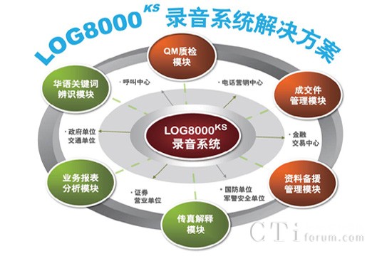 因應(yīng)各種產(chǎn)業(yè)客戶的需求,提供LOG8000KS錄音系統(tǒng)、QM質(zhì)檢模塊、傳真解釋模塊、數(shù)據(jù)儲存?zhèn)湓芾砟K、華語關(guān)鍵詞辨識模塊、業(yè)務(wù)報表分析模塊、成交件管理模塊等,完整解決方案。
