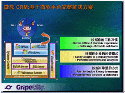 GrapeCity作為國內第一個引入MSCRM的獨立解決方案供應商,積累了相當豐富的實施經驗,在這一領域擁有多項"第一"。同樣,GrapeCity已為多家客戶實施MSCRM3.0獲得成功的利好消息,也為Microsoft DynamicsTM CRM(MSCRM)3.0中文簡體版的正式發(fā)布錦上添花。